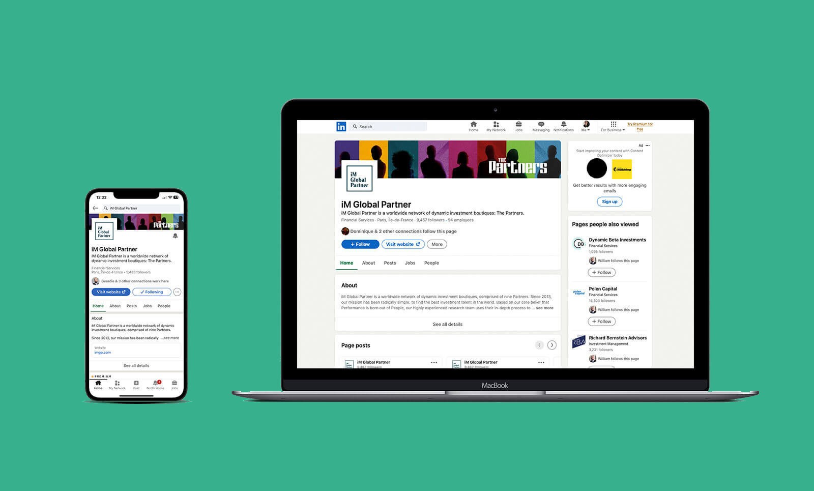 IMGP’s investment approach is all about partnering with specialist investment firms from around the world to gain access to the very best talent. The big idea here was based on the iconic TV series of yesteryear, with silhouetted figures representing ‘The Partners’ as though they were The Avengers or The Persuaders, paired with the line ‘When you want the best. The very best.’ We borrowed the language of title sequences from those thriller series to inform the style of the film and the design of the collateral pieces, giving them an unusually bold and fresh look.