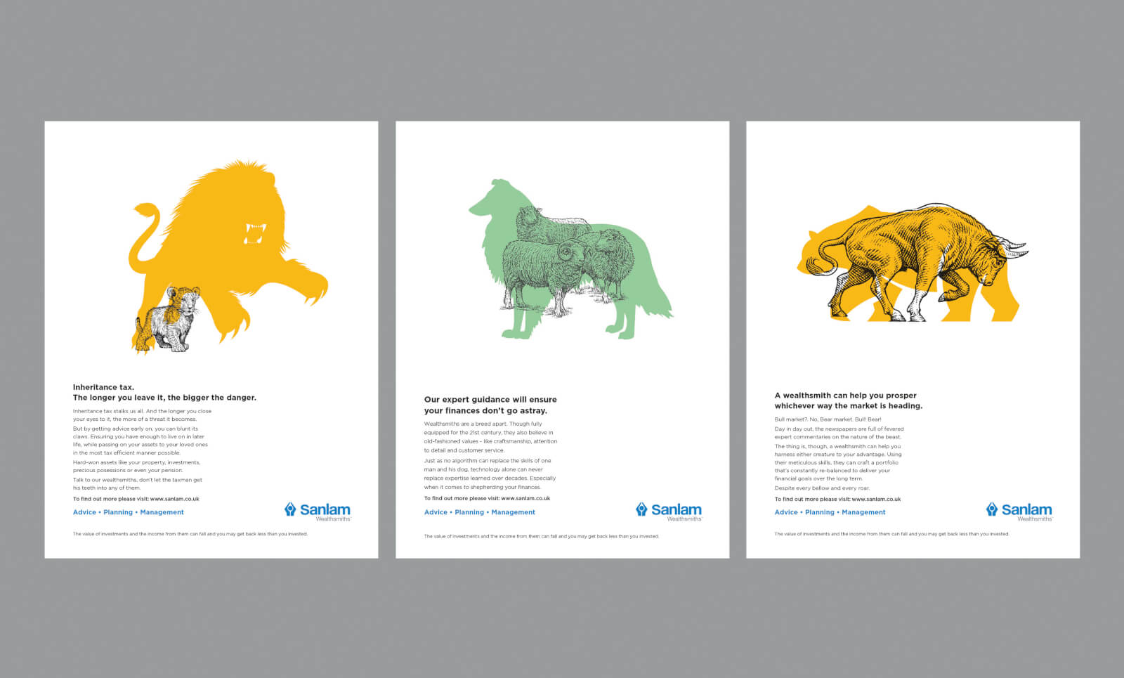 Sanlam describe themselves as ‘Wealthsmiths’, a distinctive positioning designed to express the way they ‘craft’ their wealth solutions using what they describe as old-fashioned values. At the same time, they use cutting-edge modern technology. The big idea here was to reflect this duality visually using traditional scraperboard illustrations overlaid with a modern vector style. Initially a design idea used throughout their collateral and website, it later evolved into a pleasingly distinctive advertising idea.